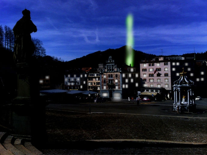 Proposal for the competition "Switzerland, We Have a Problem" by archinet web portal is a pressurised steam minaret. Minarets are used as towers where ezan has been sung and as landmarks that define the place of the mosques. The steam minaret becomes only visible during the call to pray hours, five times in the day. After the decision that bans the constructions of minarets in Switzerland, this competition has been organised to collect critical proposals against that ban.